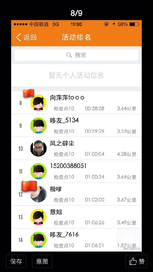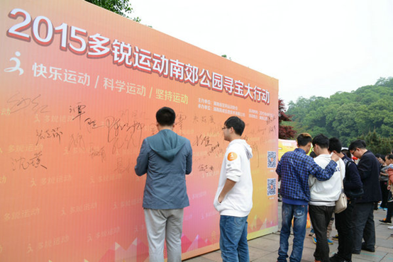除了通过“多锐运动”微博、微信提前知晓活动、报名活动的人员,活动现场也挤满了因感兴趣而当场下载“多锐运动”APP报名活动的人们。此次活动总共设置了10个寻宝点,男子第一名——“喂啊魏”耗时00:41:31,全程跑了3.66公里,女子第一名“费费”耗时00:50:49,全程跑了3.54公里,巾帼不让须眉。活动结束后,所有活动参与人员直呼过瘾、好玩。