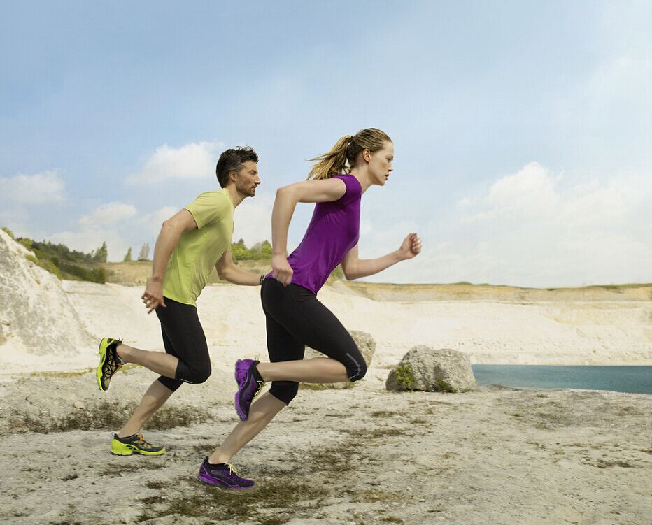 标准的跑步姿势,要时刻注意控制身体的重心,以身体中心(肚脐下两指的位置)为重心,带动整个身体的重心移动。提膝落地均匀受力,同时加大脚掌和地面的接触面积,脚尖向前、稳健落地,这样的跑步方式可以有效减轻跑步中对膝盖的伤害。