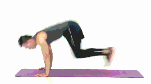 2.一侧腿抬起上踢的同时臀部上顶,双腿交替进行