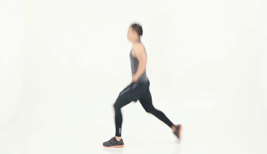 1.双腿前后开立,呈弓步下蹲